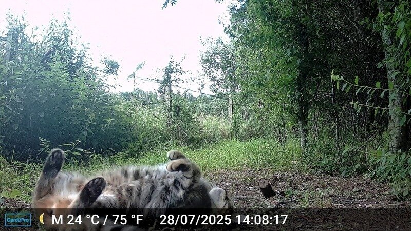 We are incredibly excited about the pregnant female we have been monitoring, who is living right in the middle of Finlay’s rehoming area. The last video we showed strongly suggested that she was heavy with milk and suckling her precious kittens.