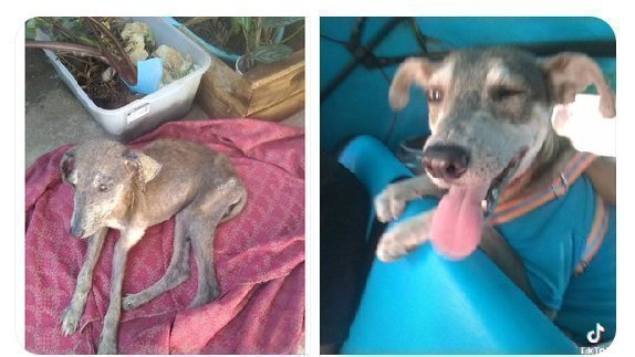 Este es el antes y después de un rescatado. Se llama Bolsita. No se da en adopción, debido a que le falta un ojo y aún no supera los traumas de toda una vida en la calle. Espero que un día encontremos su alma gemela humana. Si puedes echarle una mano para sus controles veterinarios o alimentos, te esperamos!
