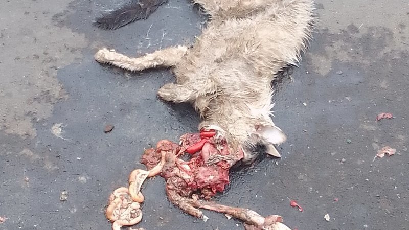 No estoy muy al corriente de las politicas de las redes. No sé si puedo o no subir fotos tan agresivas como esta. Lo que sé; es que si est@ pobre criatura soportó esta muerte tan atroz; nosotros debemos al menos "soportar" ver su foto....Al igual que yo; solo queria cruzar la calle seguramente. (Foto tomada frente a la delegación de tránsito de la Policía; aqui los carros pasan bien acelerados, como inconformes por algo...pagan inocentes...