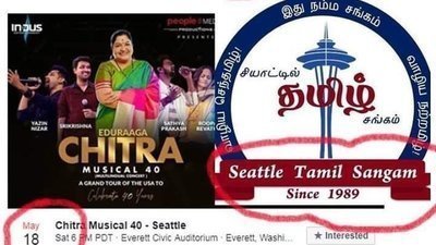 This is 10th year of Eelam Tamil Genocide and Tamils all over the world mourning this whole month and we came to know the Seattle Tamil Sangam has arranged a musical event with our honorable popular singer Chitra. We have all our respect to Singer Chitra at the same time this event will disrespect the whole Tamil community so if Seattle Tamil Sangam pays tribute to Tamil genocide it will be a good sign. Even though we are not satisfied with this event we are least expecting this action from Seattle Tamil Sangam.