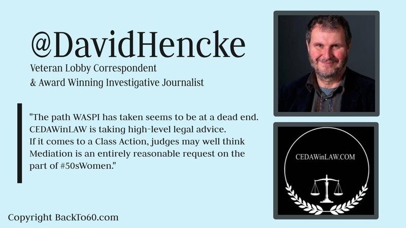 "The path WASPI have taken seems to be at a dead end. CEDAWinLAW are taking high level legal advice. If it comes to a class action Judges may well think mediation is an entirely reasonable request on the part of 50sWomen"