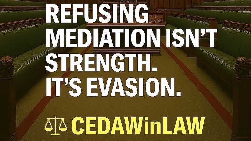 CEDAWinLAW holds the evidence, has the legal arguments in place and a Top 500 team of Mediators is on standby to be considered for the neutral role.
