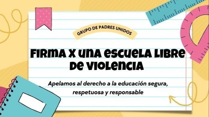 Somos un grupo de padres preocupados y comprometidos cuyo único deseo es garantizar el bienestar, la seguridad y el futuro de nuestros hijos. Día tras día, nuestros hijos estudian y conviven en el establecimiento de educación secundaria N°20 "Estados Unidos de América", San Martín, provincia de Buenos Aires un lugar donde deberían sentirse seguros y protegidos. Sin embargo, este no ha sido el caso debido a los reiterados hechos de violencia que ocurren cotidianamente.