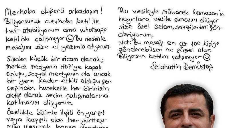 Bu vesileyle Demirtaş'ın bugün yolladığı mesajı da ilişikte sunuyoruz.