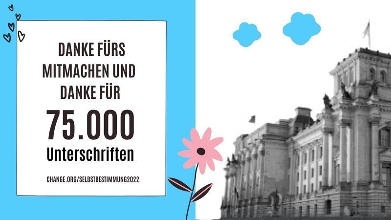 ich bin noch ganz überwältigt. Gemeinsam haben wir gestern in den sozialen Medien ordentlich Druck gemacht für ein Selbstbestimmungsgesetz noch in diesem Jahr. Unter dem Hashtag #Selbstbestimmung2022 haben hunderte gepostet und repostet, sodass wir für einige Zeit trendeten. An dieser Stelle möchte ich mich ganz herzlich bedanken! Danke fürs Mitmachen, fürs Teilen und fürs Unterschreiben. Stand heute fordern 75.000 Menschen TSG abschaffen! Ich danke euch, fürs Unterschreiben. Anbei ein paar Highlights:
