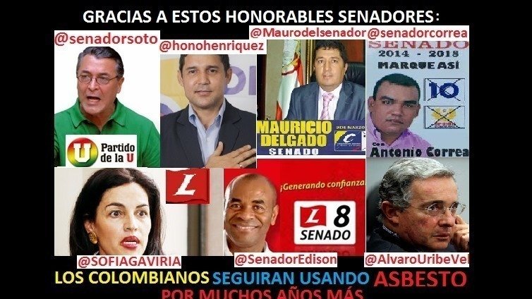Gracias a los senadores que se listan al final de este texto, en Colombia se seguirán viendo miles de casos de cáncer mesotelioma y asbestosis causados por este tóxico por muchos años más, 7 votos en contra y 4 a favor de la vida: