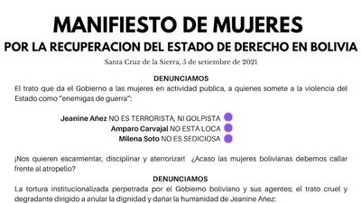 MANIFIESTO DE MUJERES POR LA RECUPERACION DEL ESTADO DE DERECHO EN BOLIVIA