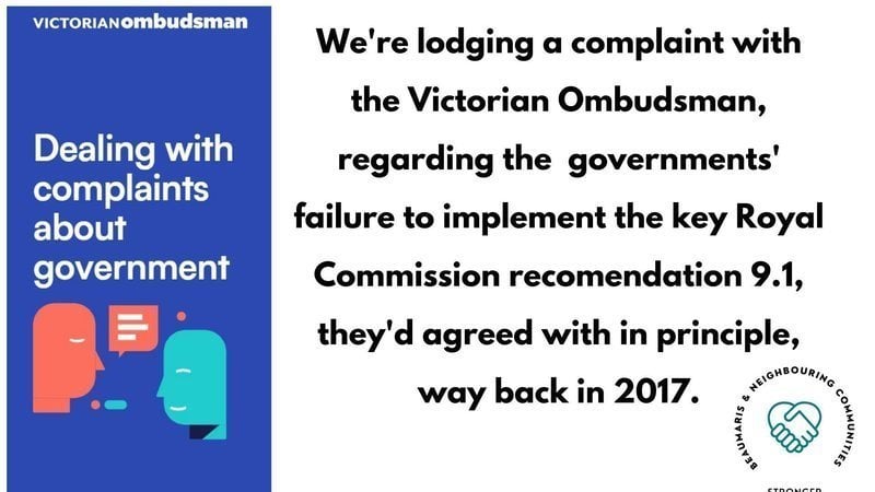 The very helpful office of the Victorian Mental Health Complaints Commissioner suggested The Victorian Ombudsman is an avenue for us to make a complaint about the Victorian governments' lack of progress on a vital Royal Commission recommendation, so that's exactly what we're going to do. On behalf of you, our ~12,000 petitioners, and every adult survivor of institutional childhood sexual abuse in Victoria.