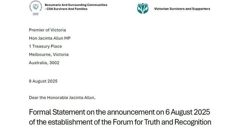 In response to our letter to the Victorian Premier Jacinta Allan on 9 August 2025, survivors and family members of victim/surivors with lived experience of institutional child sexual abuse, were able to contribute directly. To how the Beaumaris Board of Inquiry Recommendation 3: A statewide truth-telling and accountability process was implemented. Especially the experience for those participating.