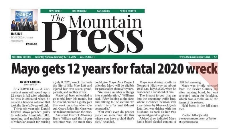 On Tuesday February 8th, I came face to face with the POS that was responsible for the death of my daughter for the first time in the court room. Daniel Mayo took a plea deal last minute. He stood before the judge and pled and was found guilty for ALL charges. (Vehicular Homicide, DUI, Vehicular Assault, Reckless Driving, Speeding, Reckless Endangerment with Deadly Weapon, and Following too closely). He was sentenced to 12 years and will be eligible for parole after serving 30% of his sentence, which is 3.5 years depending on how much “good time” they give him for his time in Sevier County jail! His license got suspended for a year during his serve time when it should be after he is released. I’m highly disgusted and was hoping for more justice than that. The justice system is more worried about protecting the criminals than the victims. It’s just not right! My sweet Ella’s life was taken by that selfish human being for a crime that was 100% preventable. He needs to be held accountable and not just get a slap on the wrist. These crimes are happening more and more every day and it’s time for something to be done! We are talking and working with our Tennessee legislator’s on getting these laws changed to where vehicular homicide caused by DUI is considered a Class A felony, not a class B. The serve time should also be 100%. So, now we wait to attend parole hearings to try to keep him in as long as we can! I can only hope he gets what he deserves in prison, and he don’t ever walk out of there! I hope he’s reminded every single day what he’s done and what he has caused. We are hoping for a change in the future for stricter laws and harsher punishments for crimes like these! We will continue to fight and hope our voices are heard. Thanks for all the thoughts and prayers! They are very much appreciated #justiceforEllaMae #holdtheMayo