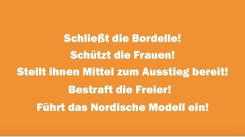 Heute bitten wir Sie, die Bordelle bundesweit wieder zu schließen, die Frauen zu schützen, ihnen Mittel für den Ausstieg bereitzustellen, die Freier zu bestrafen und auch für die Zeit nach der Pandemie die deutsche Prostitutionspolitik in Richtung „Nordisches Modell“ zu ändern, da Deutschland hinter den europäischen Empfehlungen in diesem Bereich zurückbleibt.
