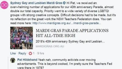 The gracious response from the NSWTF here: https://www.nswtf.org.au/files/gs_ltr_1308_terese_casu_re_2018_mardi_gras_parade.pdf