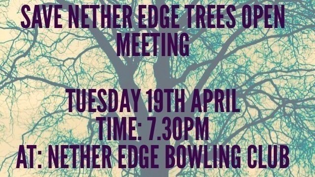 Tomorrow evening Helen Mcllroy will be holding a public meeting on behalf of Save Nether Edge trees to update everyone on where we are at and to discuss action going forwards.