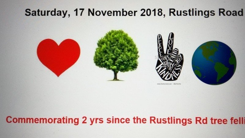 Two years after the felling of the Rustlings Rd trees, you are invited to have a heart and come and remember with us in a candle light/torch walk.