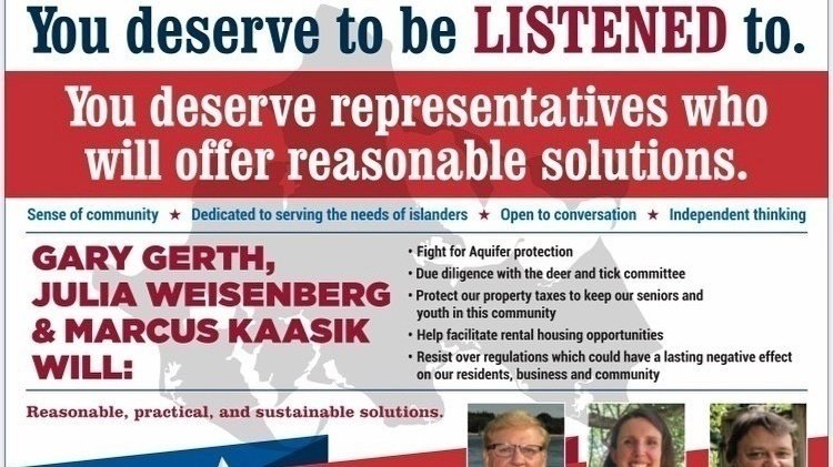 Fair, reasonable, direct, local Shelter Islanders - raising children here, who understand how Shelter Island lives, works, sharing ideas - and practical solutions.