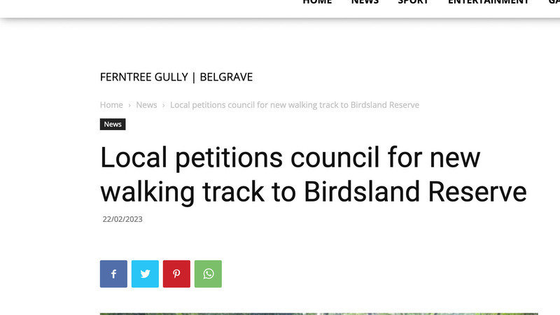 Petition updateConnect Hazelvale Rd to Birdsland with a walking trail.We have hit the headlines! :-)