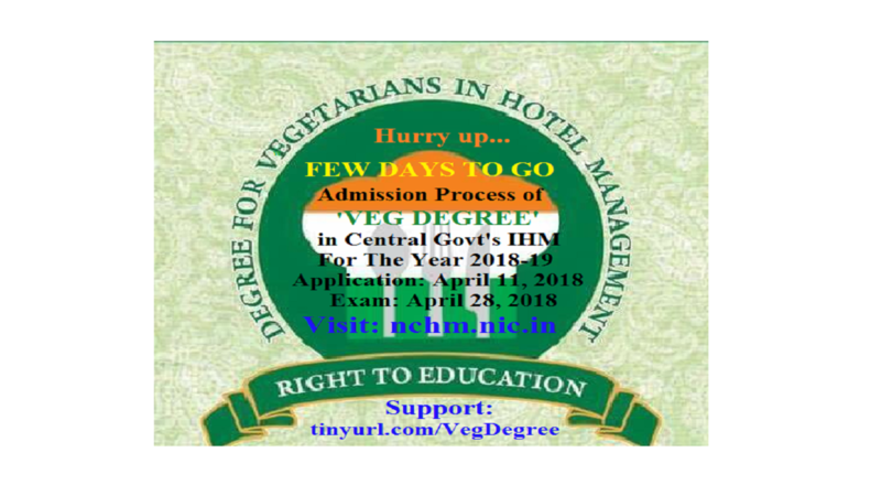 Petition updateDegree/Diploma for Vegetarians in Hotel/Hospitality Management CoursesHURRY ... Last Date for Online Application for VegDegree is Approaching