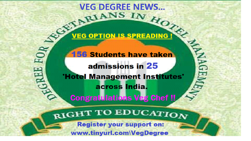 Petition updateDegree/Diploma for Vegetarians in Hotel/Hospitality Management CoursesVEG DEGREE SPREADING ITS WINGS ALL THROUGHOUT INDIA !