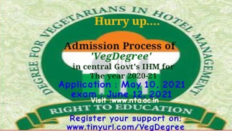Petition updateDegree/Diploma for Vegetarians in Hotel/Hospitality Management CoursesADMISSION FOR VEGETARIANS IN ALL THE IHM UNDER NCHMCT