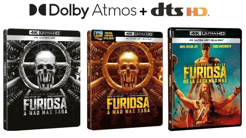 El 28 de agosto (25 de septiembre la edición Black&Chrome), quienes disfrutan del cine en formato físico en España podrán hacerse con tres ediciones en 4K Ultra HD + Blu-ray de la esperada película Furiosa: De la Saga Mad Max, que Warner Bros en España a través de su distribuidora ARVI Licensing. Podremos disfrutar el doblaje en castellano en Dolby Atmos en el disco 4K Ultra HD y DTS-HD Master Audio en el disco Blu-ray.