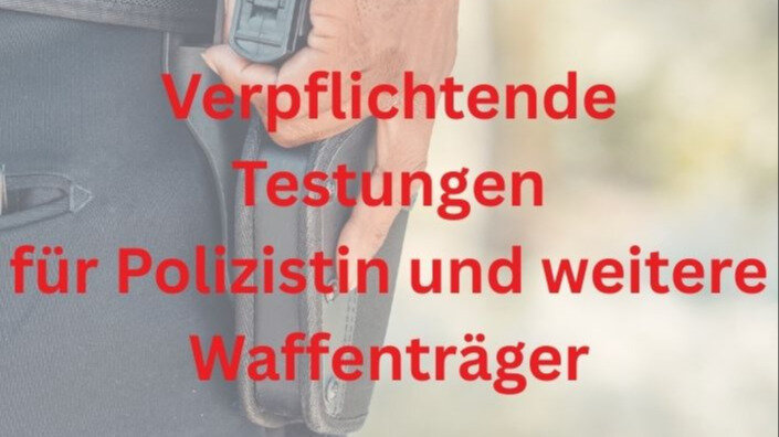 Jeder waffentragende Beamte (Polizei, Bundespolizei, Justizvollzug, private Sicherheitsdienste mit Waffenerlaubnis) muss bei jedem Dienstantritt einen Alkohol- und Drogentest absolvieren.