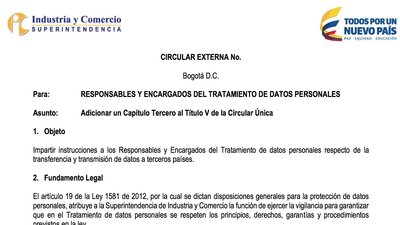 CIRCULAR DE LA SIC PROHIBE USO DE SERVIDORES EN EEUU PARA ALBERGAR DATOS DE COLOMBIANOS!