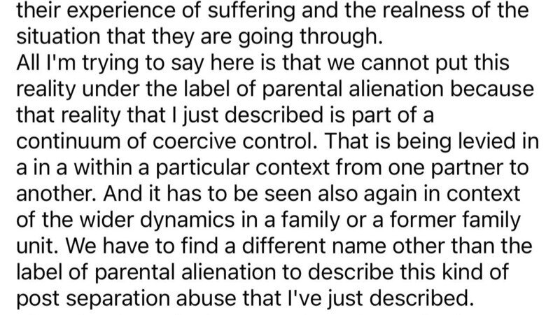 "Parental alienation is real and harmful, but the name 'parental alienation' is unsuitable for some reason."