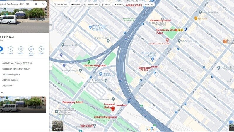 We, the undersigned residents, parents, homeowners, and business owners of Bay Ridge and Sunset Park, urgently bring to your attention our strong opposition to the proposed construction of a seven-story homeless shelter at 6530 4th Ave.