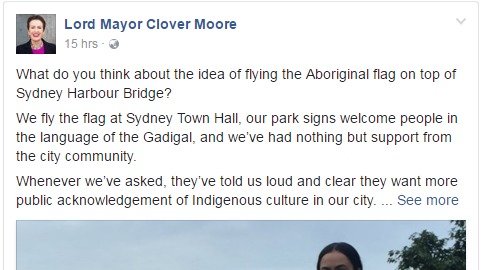 Thank you, Clover Moore. Your support is greatly appreciated and we hope that the Aboriginal Flag is permanent fixture on the Sydney Harbour Bridge.