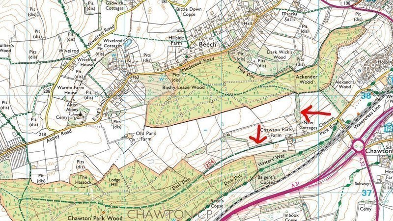 We recently discovered that Chawton Park Farm and its woodlands contain a Medieval Deer Park, with ‘palings’ (banks and ditches) as can be seen on the attached photo of the Ordnance Survey Map. A photo of the deer 'paling' can be seen here: https://drive.google.com/file/d/1JbcPnd5q4MA3t6R7K9HrdIBdXZqz89cM/view?usp=sharing