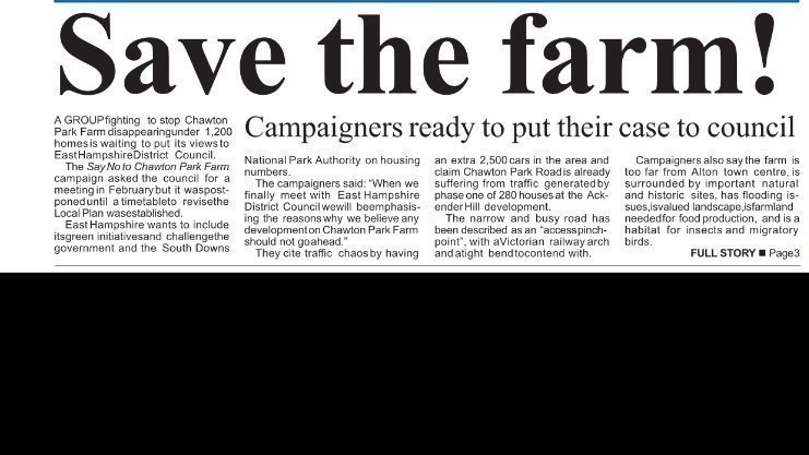 Meanwhile we do not want to see Chawton Park Farm included in the next Local Plan Consultation. If it is, we will be reiterating all the well known arguments against its inclusion in our response at that time.