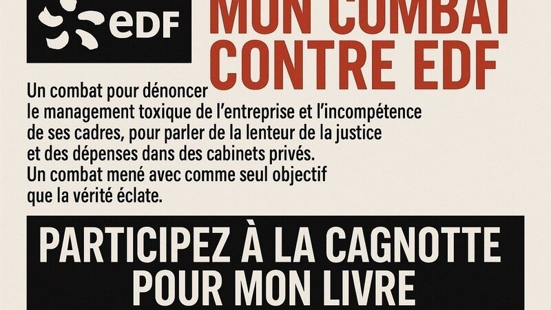 Je remercie sincèrement celles et ceux qui ont déjà soutenu ma cagnotte « Leetchie », qui me permet de préparer ce livre. Car écrire nécessite des ressources, du temps, et des moyens. J’en appelle donc à votre générosité : je souhaite débuter l’écriture début 2026 pour une parution au printemps de la même année. Vos dons, même modestes, sont précieux. L’union fait la force. Je joins à ce message le lien de la cagnotte. Ce livre dérangera EDF, mais vous contribuerez à ce que la vérité soit connue de tous…