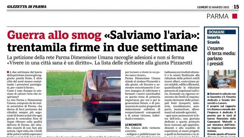 Petition updateSalviamo l’aria di Parma dall’inquinamento, insieme si può fareIeri articolo sulla Gazzetta di Parma