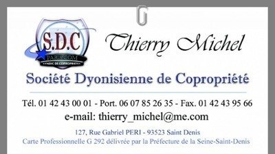 Le syndic SDC (ou Société Dionysienne de Copropriété) est localisé à Saint-Denis. La carte professionnelle de ce syndic arrivera à expiration le 26/09/2016.