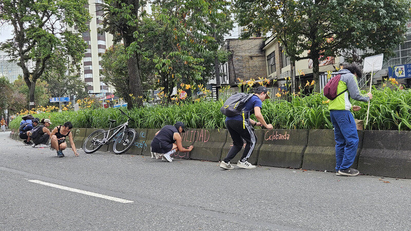 Con el colectivo ciudadano Pedaleros Urbanos Manizales realizamos una actividad simbólica en la Ciclovía del 7 de julio, en la que participaron niños y personas de todas las edades. Dejamos un mensaje temporal en el separador, reclamando a la Alcaldía de Manizales y a la Secretaría de Movilidad el mantenimiento de la demarcación vial del ciclobanda (banda ciclopreferente).