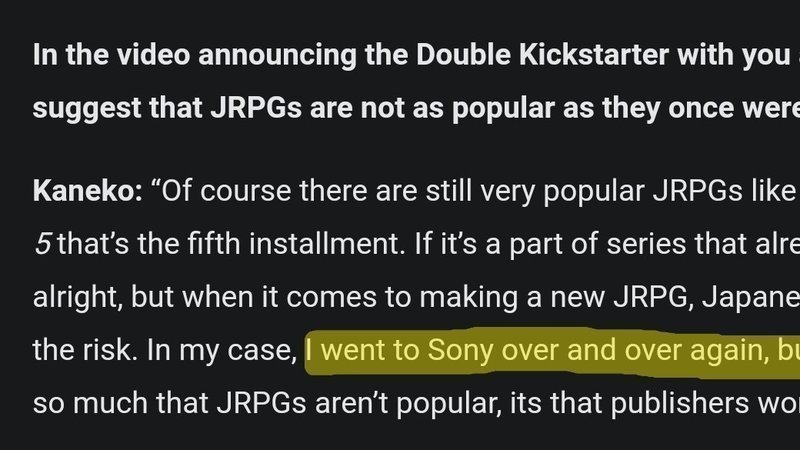 This really makes me sad, playstation is a japan based console and they seemed to have given up on JRPGS as a whole. Former Japan Studio devs went to Sony to fund for a JRPG multiple times but were denied. Jim Ryan clearly has no respect where the Console began. How long do we have to endure till he only focuses on the west. If you had any hopes for Legend of Dragoon remake, time to put it to rest