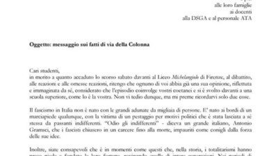 E' per queste ragioni che auspichiamo fortemente che non vi sia alcuna reprimenda nei confronti della dirigente Annalisa Savino, ma piuttosto si affronti con fermezza e serietà il pericolo neofascista che si annida fra gli studenti e nella nostra società.