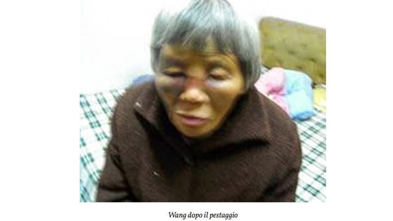 Il giorno dopo due persone hanno condotto Wang su una piccola collina (Chongqing è una famosa città di montagna), senza nessuno intorno, l'hanno picchiata e le hanno fratturato le gambe. Hanno mentito a sua figlia dicendo che era saltata da casa sua al quarto piano (anche se tutte le sue finestre avevano le zanzariere di sicurezza e non avrebbe potuto uscire). Al suo ex marito hanno raccontato un'altra versione della storia, dicendo che era uscita da sola di notte ed era caduta dalle scale.