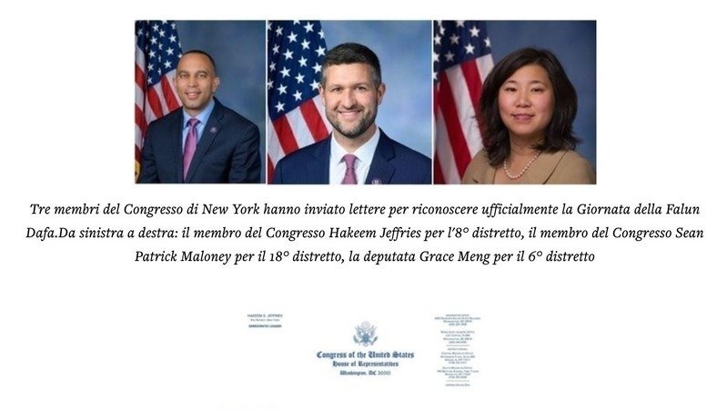 (Minghui.org) Il 13 maggio è il 31° anniversario dell'introduzione pubblica della Falun Dafa e la 24a Giornata Mondiale della Falun Dafa. Tre membri del Congresso di New York hanno inviato lettere per riconoscere ufficialmente la Giornata della Falun Dafa, ringraziare il Maestro Li Hongzhi, fondatore della pratica, e ringraziare per i contributi della pratica alla comunità.