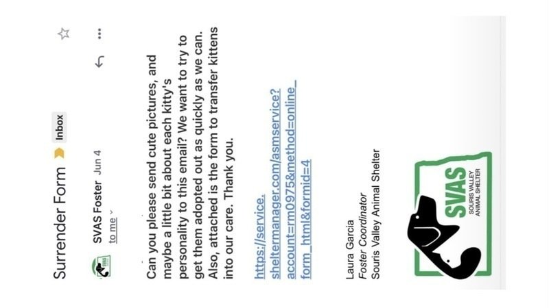 Two: Why would a foster need to fill out a form to transfer care back to SVAS? Should the animals in their foster program not already be under SVAS care?