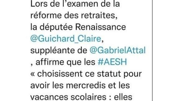 Pour une grande majorité, nous ne choisissons pas d'exercer ce beau métier d'AESH pour profiter des vacances scolaires. Les personnes qui viennent pour cela avant tout, n'ont rien à faire dans cette profession car c'est un manque de respect pour notre boulot et avant tout pour les élèves en situation de handicap que nous accompagnons et qui ont besoin de nous.