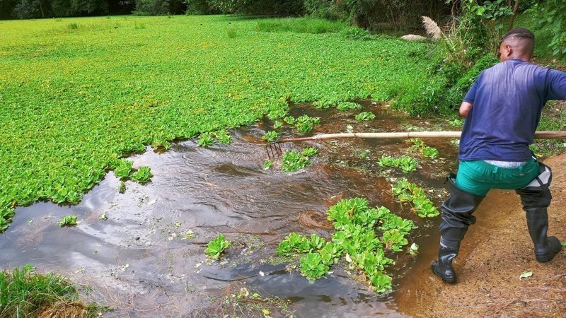 A retirada manual das macrófitas havia sido interrompida por questões legais e contratuais.