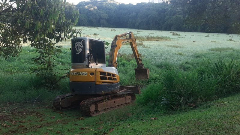 Informamos que foi iniciada a retirada das macrófitas aquáticas com a utilização de retroescavadeira, barco e cordas de contenção.