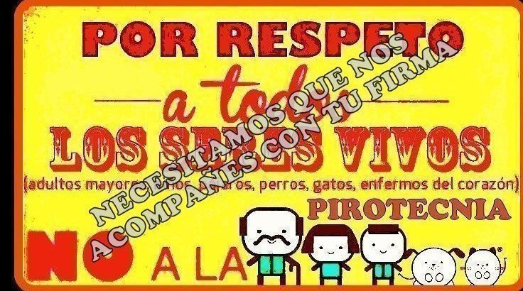 Para que se PROHÍBA el uso de PIROTECNIA. Es inadmisible  lo que se debe soportar no solo para las fiestas navideñas, sino  en el transcurso del año: estruendosas detonaciones producidas por fuegos pirotecnia y fuegos artificiales.
