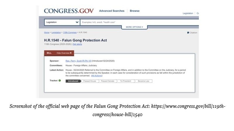 After the 119th Congress began, Rep. Perry again introduced the Falun Gong Protection Act on February 24, 2025. It was again unanimously passed by the House of Representatives.