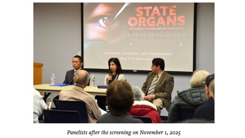 (Minghui.org) The documentary State Organs was screened at the Chester County Library in Exton, Pennsylvania, on November 1, 2025. The film exposes the Chinese Communist Party’s (CCP) forced organ harvesting crimes against unlawfully imprisoned Falun Gong practitioners.
