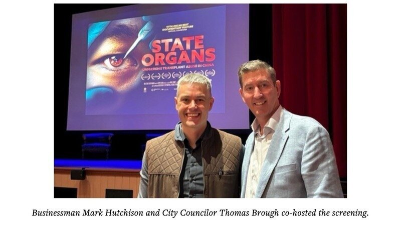 Brough, an emergency physician, was elected to the Albany City Council in 2021. This was the first time he had seen the film. Before the event, he read Bloody Harvest: The Killing of Falun Gong for Their Organs, written by human rights lawyer David Matas.