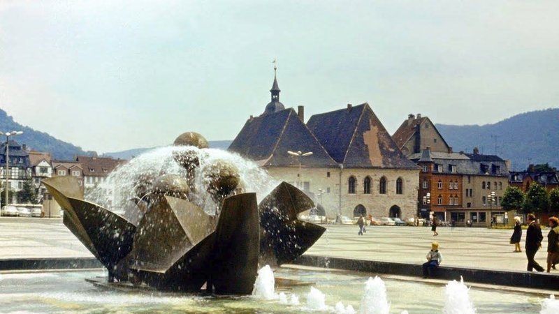 Kristian Philler stellt in eine Facebook-Gruppe ein Video ein mit der Bemerkung: "Es zeigt den Abriss der Saalstraße und das gesamte Tristesse des Kosmonautenplatzes samt traurig sprudelndem Brunnen …"