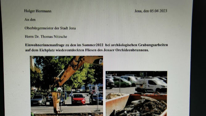Da ich nur unbefriedigende Antworten zu den leichtfertig zerstörten Fliesen des Jenaer Orchideenbrunnen des Metallgestalters Josef Bzdok erhalten habe, habe ich eine Einwohneranfrage gestellt.