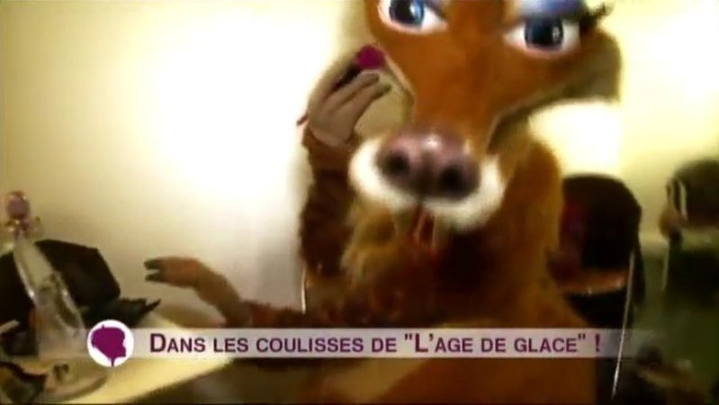 On French tours for L'age De Glace Live!, Scratte, in the backstage, applies French makeup on her face.